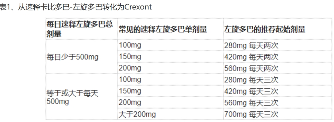 对于从Rytary(缓释卡比多巴-左旋多巴)转换的患者,使用左旋多巴成分以大约1:1mg的基础开始用于本品转换。